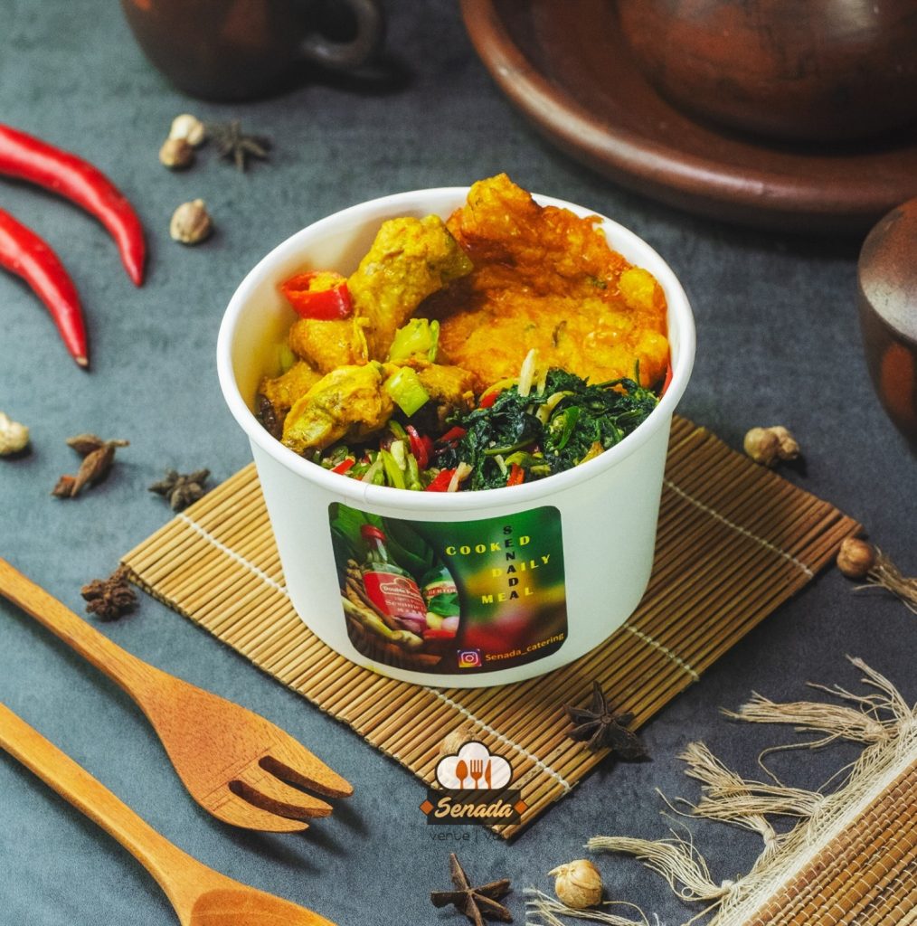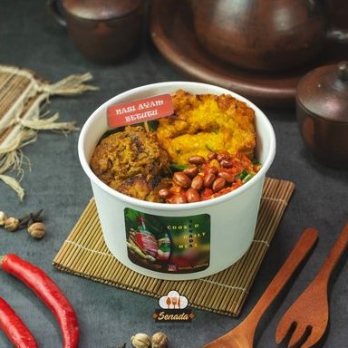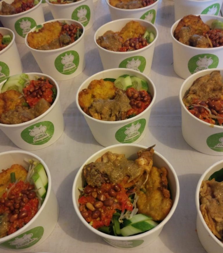 Nasi Putih, Ayam Betutu, Kering tempe, Mie goreng, Sambal, Tumis daun pepaya+teri